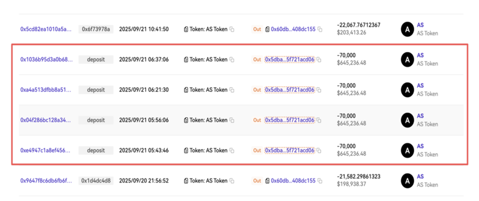◆ September 21, 5 AM: Four Consecutive Mints Totaling 280,000 AS